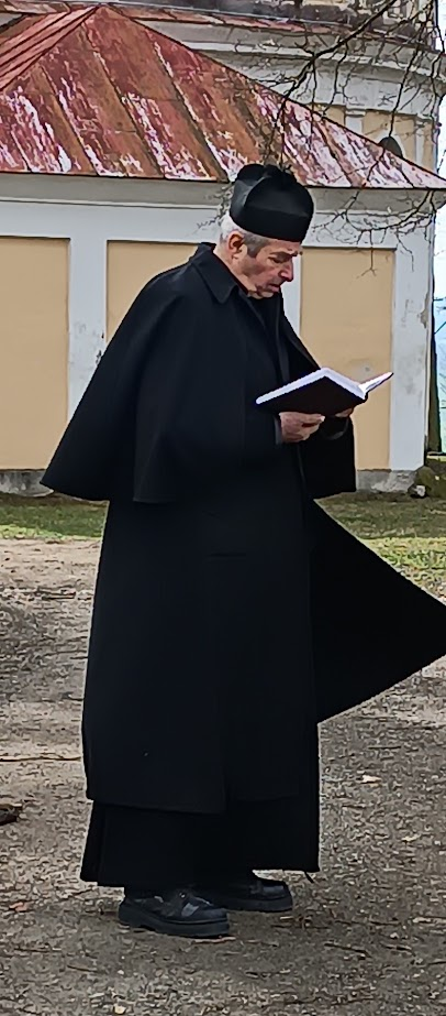 Übersetzung: HIER RUHEND, RUF ICH UND BITTE DEMÜTIG UM GEBETE. WOHIN ICH GEHE, WEISS ICH NICHT ICH SEHNE MICH NACH DEM HIMMEL LEBE WOHL, IHR, DIE NACH MIR KOMMEN BALD WERDET IHR FOLGEN HEUTE FÜR MICH MORGEN FÜR DICH JOHANNES LEOPOLD KELLNER, EMERITIERTER SCHREIBER VON KOUT, GEBOREN AM 28. APRIL 1699 BEGRABEN AM SELBEN TAG IM JAHR 1751. (Dieses Epitaph ist ein typischer Ausdruck barocker Meditation über den Tod, der die Vergänglichkeit des Lebens und die Sehnsucht nach dem ewigen Leben ausdrückt und daran erinnert, dass der Tod jeden erwartet.)